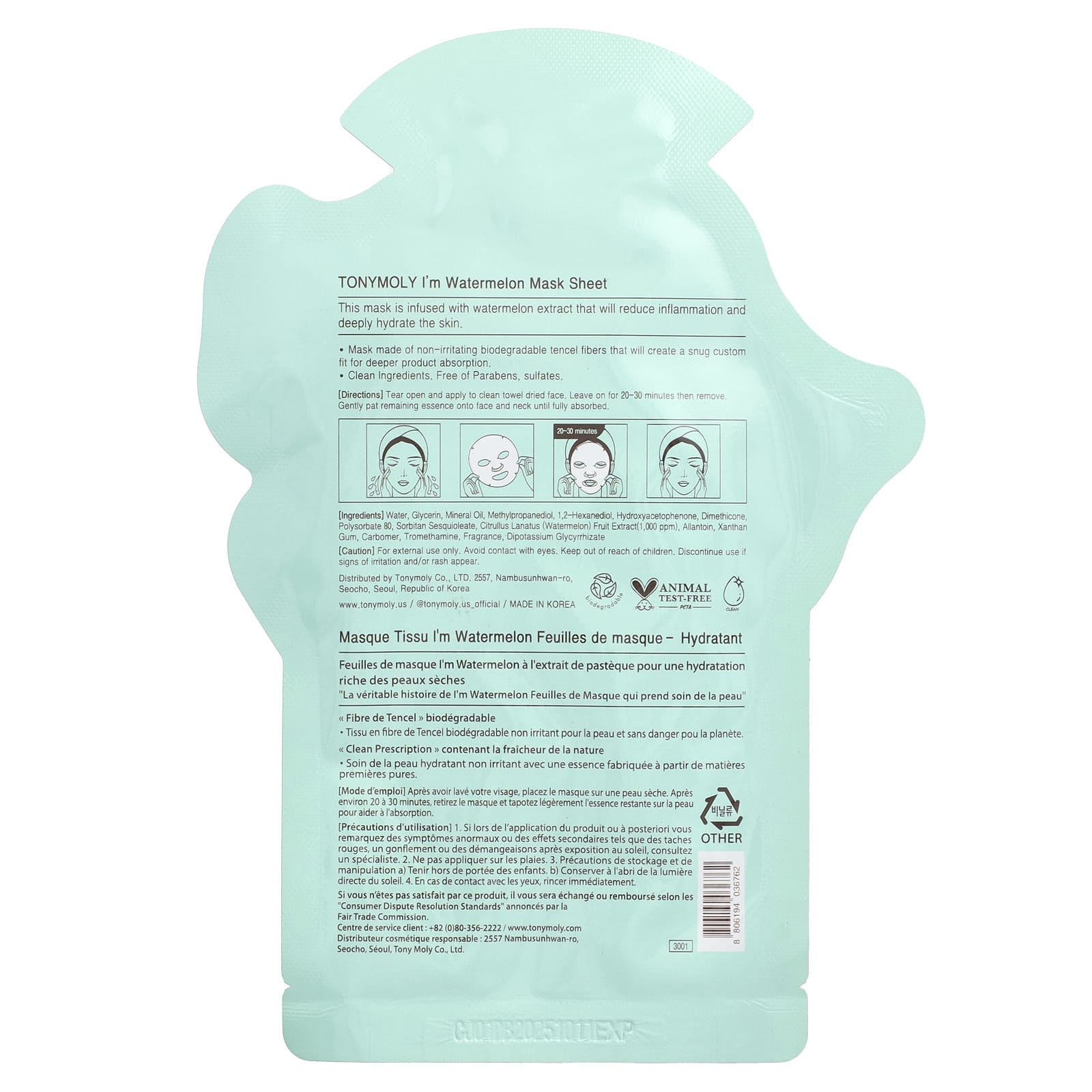 TonyMoly Im Watermelon Folha de Máscara Hidratante 1 Folha 21 g (074 oz) – TonyMoly Beleza Máscaras Faciais de Beleza Máscaras Faciais Máscaras em folha K-Beauty.