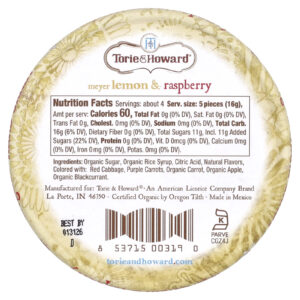 Torie & Howard Balas Duras Orgânicas Limão Meyer e Framboesa 57 g (2 oz) – Torie & Howard Alimentos Chocolate e doces Doces Doces e Pirulitos.