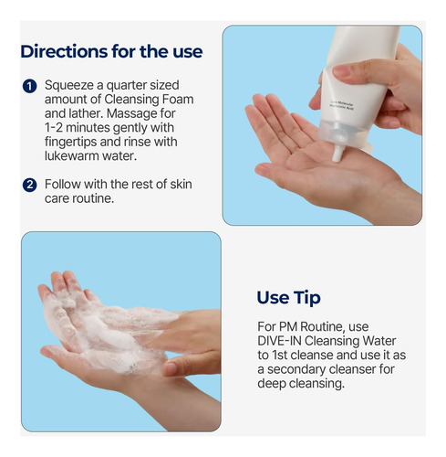 8D PARA HIDRATAÇÃO PROFUNDA: Formulado com 8 tipos de hialurônico de alto, médio e baixo peso molecular ácido urônico, essa estrutura complexa 8D exclusiva cria redes 3D dentro das camadas da pele para fornecer profundidade e hidratação uniforme em várias camadas, deixando sua pele profundamente hidratada e suave. LAVAGEM FACIAL HIDRATANTE: Deixa a pele com uma sensação de frescor e hidratação sem rigidez ou ressecamento, com um acabamento leve e não oleoso. A fórmula mantém um nível de pH adequado para a pele de 5 a 6 para minimizar a irritação causada por produtos de limpeza muito ácidos ou alcalinos.
