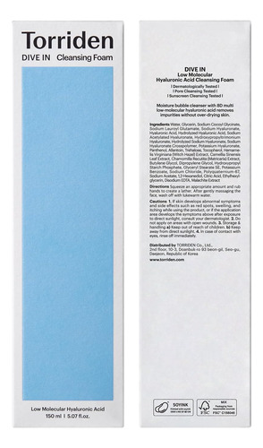 TORRIDEN DIVE IN na forma de uma limpeza com ácido hialurônico de baixo peso molecular
