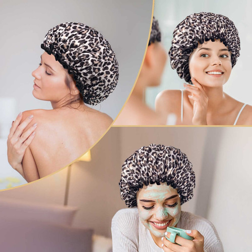 Ouvi dizer que muita beleza não conseguiu encontrar uma touca de banho perfeita? A touca de banho Aquior oferece uma touca de banho impermeável atualizada para resolver todos os problemas. Confira nossa nova melhoria. 1 Upgrade de design de camada dupla, camada externa de cetim suave e camada interna de EVA à prova d'água. 2 tamanhos maiores. 12,9 polegadas de diâmetro e 2,44 polegadas de altura, para a maioria dos penteados e comprimentos de cabelo. 3. Elástico confortável, bainha bem selada, que não se sentirá apertado por muito tempo. 4 Durável e de uso múltiplo, pode ser aplicado no banho, na limpeza facial, na cozinha, na limpeza doméstica e muito mais. Proteja seu cabelo de se molhar de forma eficaz. A touca de banho impermeável Aquior oferece mais opções para você e sua família. Esperamos que essas toucas de banho de design fofo possam lhe trazer bom humor e tornar sua vida melhor. – Mantenha o cabelo secoAs toucas de banho Aquior com uma camada dupla de proteção são espaçosas, resistentes e impermeáveis. Segure bem o cabelo ao usá-las durante o banho ou no banho. – Confortáveis. Essas toucas de banho reutilizáveis não deixam um elástico irritante na testa, embora ainda sejam fortes o suficiente para evitar que o cabelo caia. Não é apertado, elástico o suficiente para um ajuste perfeito. Fácil de colocar e tirar. — Ajuste flexível para a maioria dos tamanhos de cabeça. Adequado para circunferência da cabeça de 20 a 30 polegadas. Perfeita para adultos e crianças, cabelos compridos e cacheados. Sem problemas de tamanho. – A touca de banho multifuncional à prova d'água Aquor não é adequada apenas para tomar banho e tomar banho, mas também para cozinhar e fazer tratamentos de spa, bem como para amarrar o cabelo enquanto aplica maquiagem, lava o rosto e muito mais. O tecido leve facilita dobrar a touca de cabelo pequena para viagens. – Boa ideia de presente. Essas toucas de banho femininas são elegantes e fofo e funcional. É uma ideia inteligente de presente para aniversário, feriado, Dia das Mães e Natal.