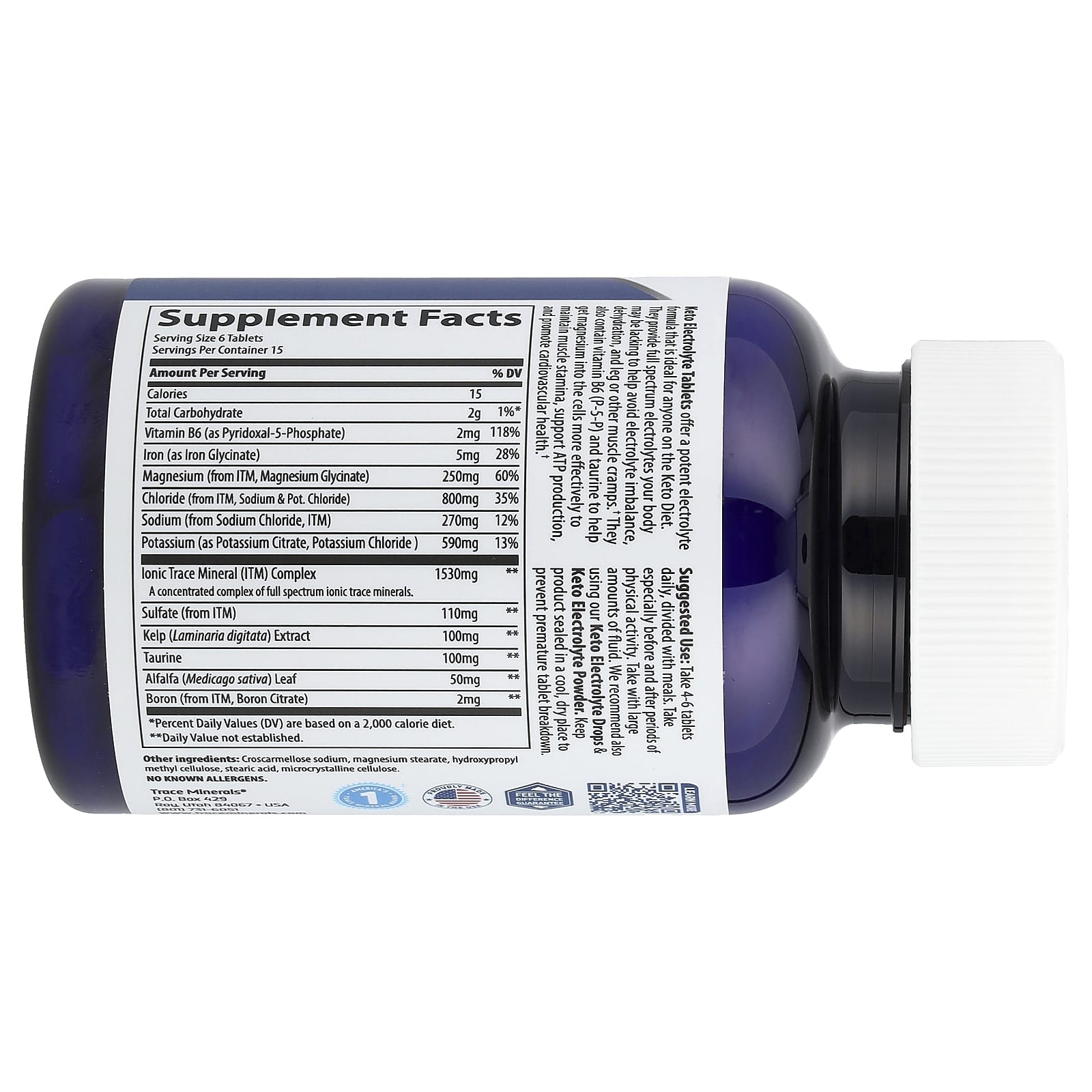 Tome de 4 a 6 comprimidos por dia, dividido com as refeições. Tome especialmente antes e após períodos de atividade física. Tome com grandes quantidades de líquido. Recomendamos também o uso de nossos Eletrólitos Cetogênicos em Gotas e Eletrólitos Cetogênicos em Pó. Mantenha o produto lacrado em local fresco e seco para evitar a quebra precoce do comprimido.