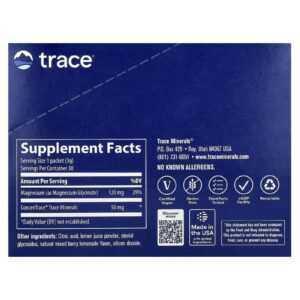 Trace Glicinato de Magnésio em Pó Limonada de Frutos Silvestres Mistos 30 Embalagens 3 g (011 oz) Cada – Trace Suplementos Minerais Magnésio Glicinato de Magnésio.