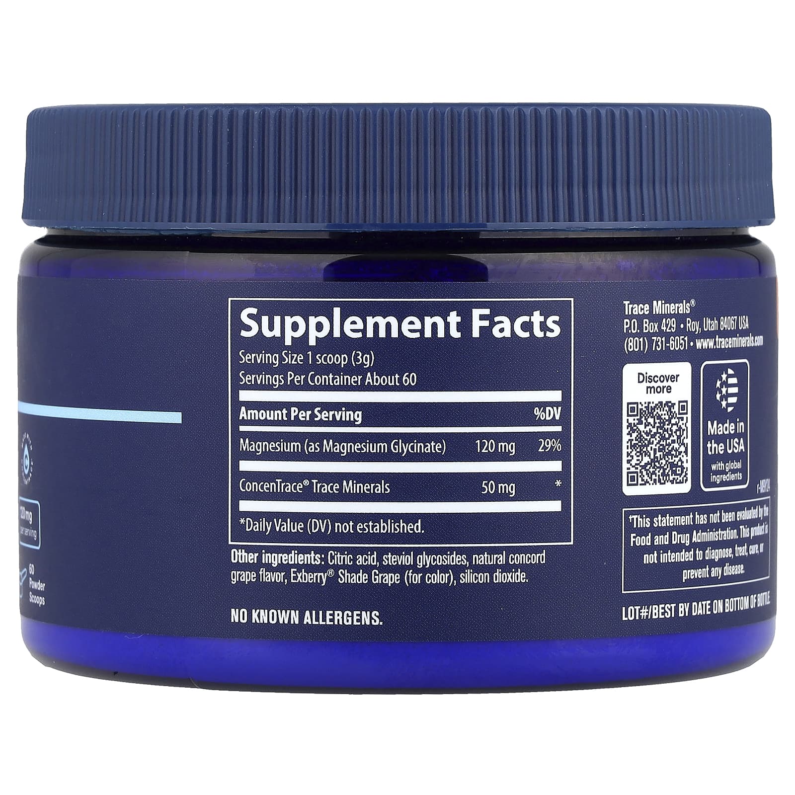 Trace Glicinato de Magnésio em Pó Uva 180 g (635 oz) – Trace Suplementos Minerais Magnésio Glicinato de Magnésio Microminerais.