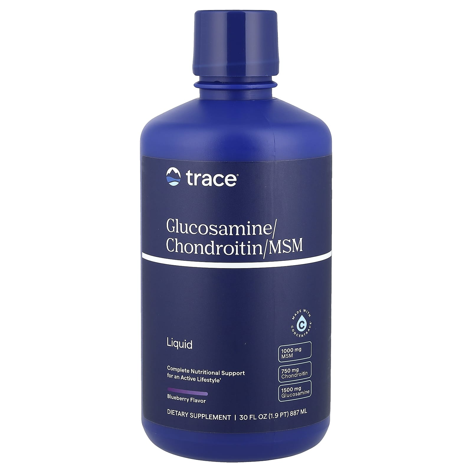Trace Glicosamina/Condroitina/MSM Líquida Mirtilo 887 ml (30 fl oz) – Trace Suplementos Ossos, Articulações e Cartilagem Fórmulas de Glucosamina.