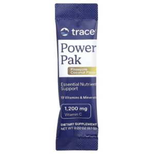 Trace Power Pak Abacaxi e Coco 30 Embalagens 61 g (022 oz) Cada – Trace Suplementos Vitaminas Vitamina C Nutrição Esportiva Hidratação e Eletrólitos.