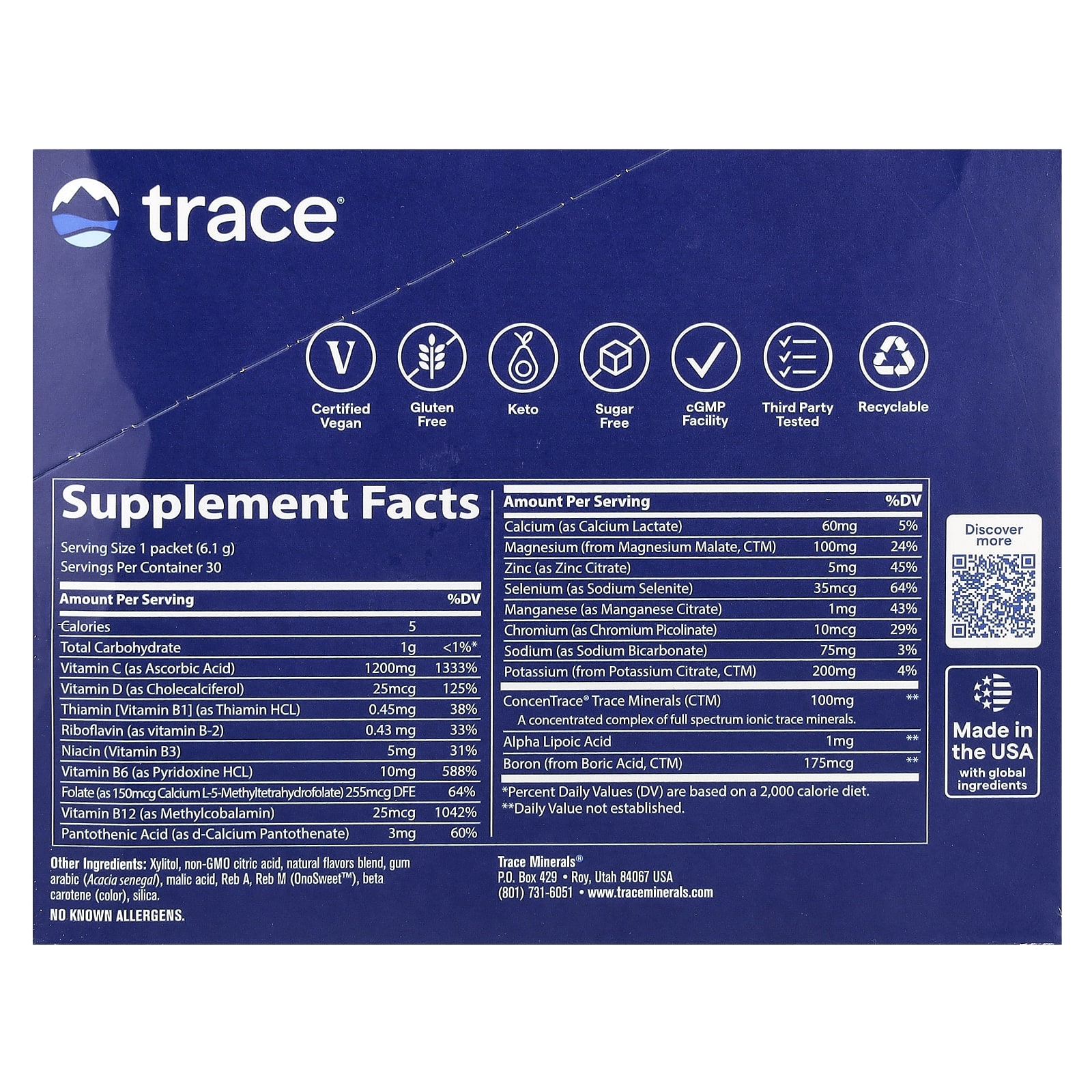 Trace Power Pak Zero Açúcar Cítricos 30 Embalagens 61 g (022 oz) Cada – Trace Suplementos Vitaminas Vitamina C Nutrição Esportiva Hidratação e Eletrólitos.