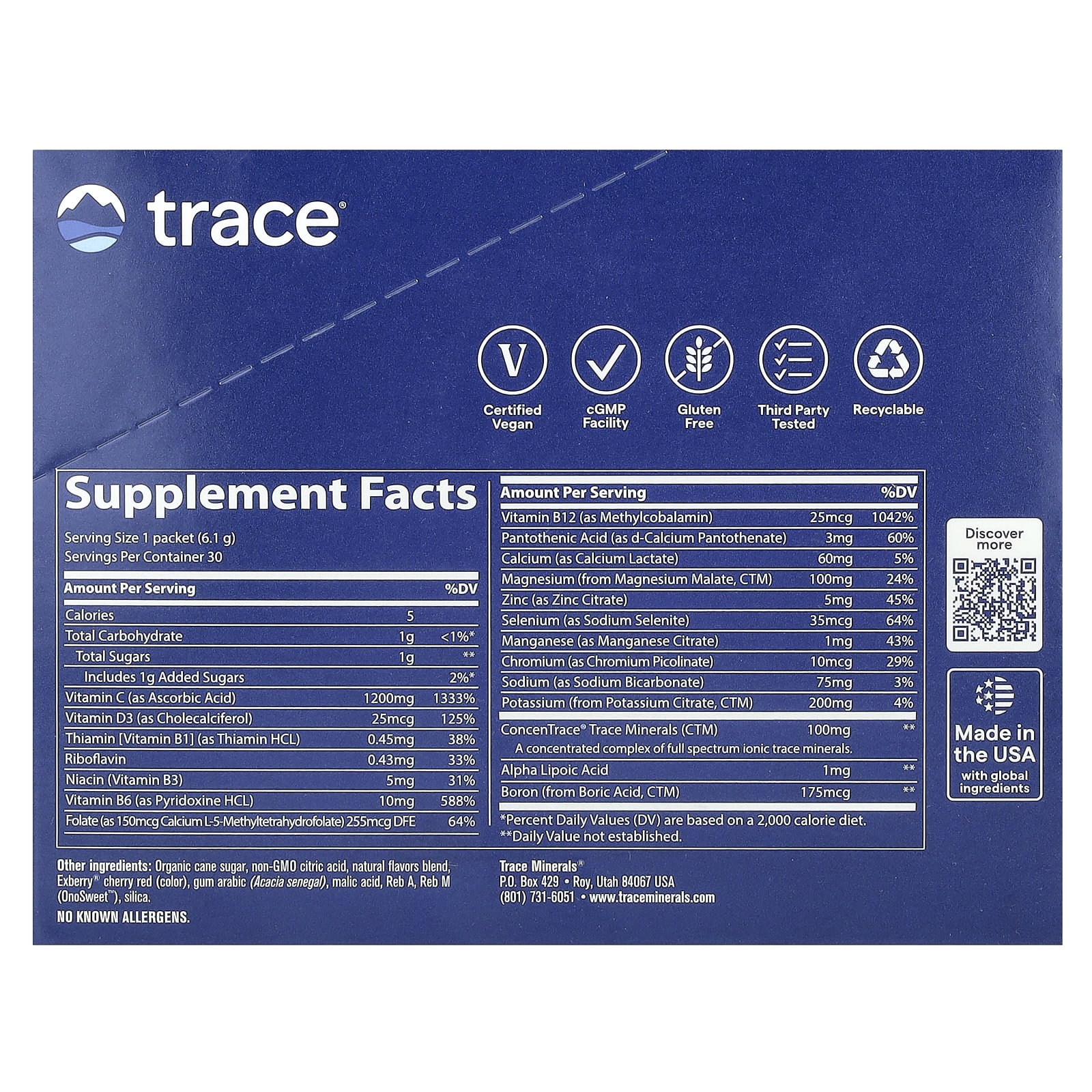 Trace PowerPak Framboesa 30 Embalagens 61 g (022 oz) Cada – Trace Suplementos Vitaminas Vitamina C Nutrição Esportiva Hidratação e Eletrólitos.