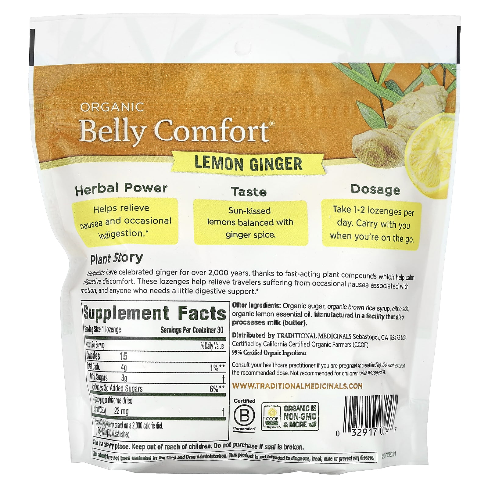 Traditional Medicinals Belly Comfort Orgânico Limão Gengibre 30 Pastilhas Embaladas Individualmente – Traditional Medicinals Banho e Cuidados Pessoais Armário do Banheiro Pastilhas para garganta inflamada e tosse Homeopatia.