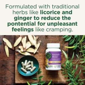 A folha de Senna é usada há milhares de anos para fazer com que seu “”motivo”” funcione novamente, estimulando suavemente os intestinos e auxiliando o processo de eliminação natural do corpo. Formulado com ervas orgânicas como alcaçuz e gengibre para reduzir a possibilidade de sensações desagradáveis, como cólicas, Smooth Move® é melhor tomado antes de dormir.