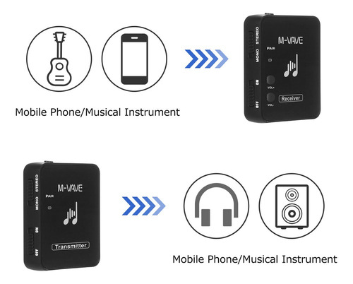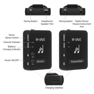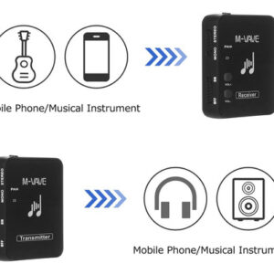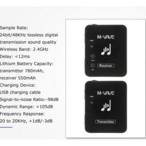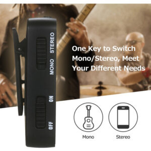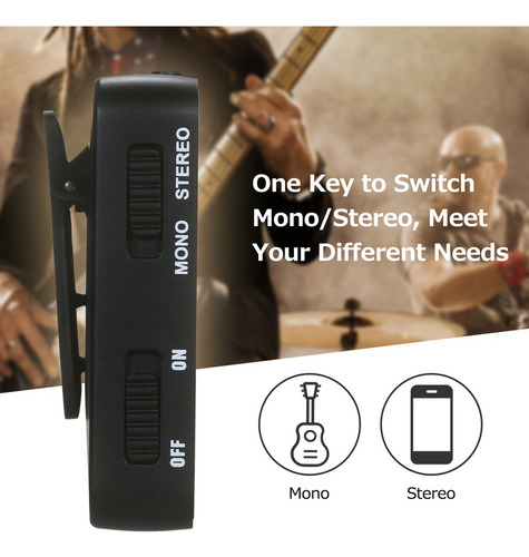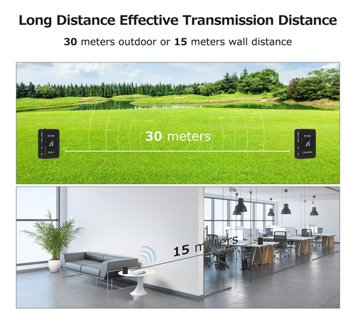 5 conjuntos de equipamentos podem ser suportados para funcionar ao mesmo tempo. O transmissor atua como um microfone sem fio com clipe de colarinho e pode ser usado como um transmissor de bolso