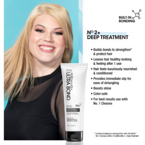 Tratamento de reparo profundo ULTRA BOND nº 2, seguro de cor — Colagem embutida para cabelos fortes, saudáveis e brilhantes, 8,45 fl oz — A tecnologia de colagem integrada fortalece e protege durante e após o clareamento — Constrói aderências para cabelos com aparência mais saudável após apenas 1 uso — Segura a cor e aumenta o brilho para uma nutrição e condicionamento luxuosos — Fácil desembaraçamento com deslizamento imediato — Melhores resultados com a limpeza nº 1, ideal para todos os cabelos tipos e texturas