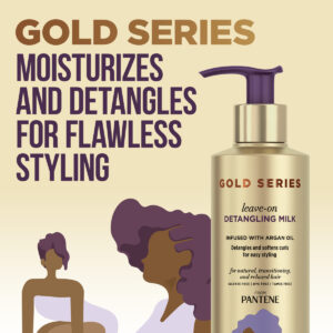 Tratamento desembaraçante com leite da série Pantene Gold para cabelos cacheados, cabelos naturais e texturizados, desembaraçador de cabelo sem enxágue de 7,6 onças com infusão de óleo de argan rico, corante e sulfato – STRENGTH prepara e fortalece o cabelo contra danos, desembaraçando e suavizando os cachos – FÓRMULA DE ÓLEO DE ARGAN Fórmula sem sulfato e sem corante infundida com óleo de argan – DESENVOLVIDA CUIDADOSAMENTE O padrão-ouro hidratado, desenvolvido por cientistas negros e aperfeiçoado por cabeleireiros negros – DICA DO ESTILISTA: aplique duas bombas e alise as pontas, desembarace com um pente de dentes largos e penteie