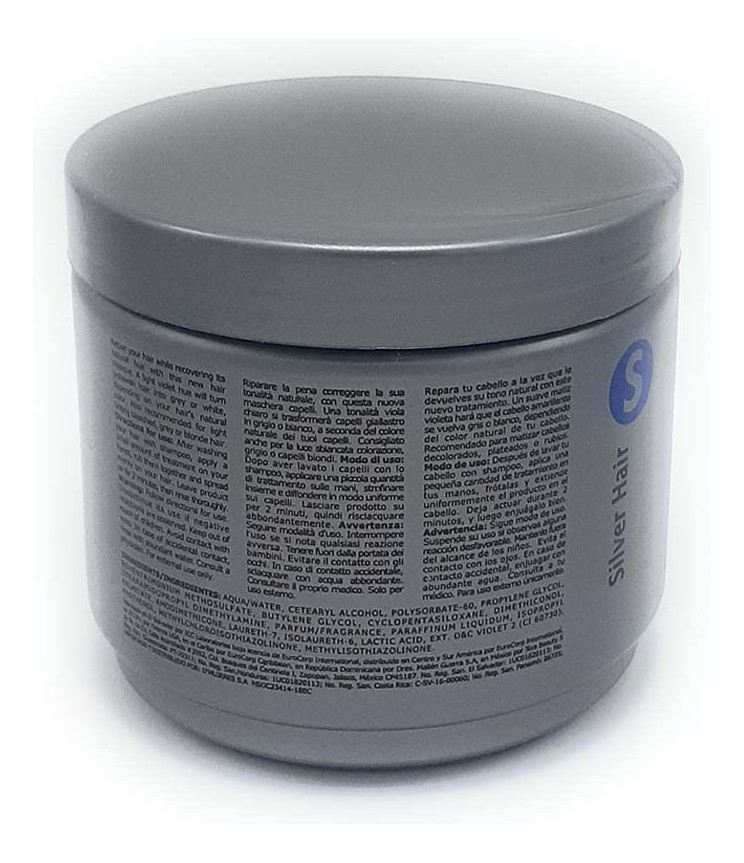 Tratamento especializado que fortalece o cabelo após a aplicação de processos de clareamento. Devido aos seus pigmentos especiais, limpa e neutraliza os tons amarelados, devolvendo sua vitalidade à cor. Ideal para manter uma tonalidade prateada em mechas ou cabelos grisalhos. Repare seu cabelo enquanto recupera sua tonalidade natural com esta nova máscara capilar. Um tom violeta claro transformará o cabelo amarelado em cinza ou branco, dependendo da cor natural do cabelo. Também recomendado para cabelos claros descoloridos, grisalhos ou loiros. – Sem sulfato de sal – Sem parabenos – com extrato de aloe vera e pantenol