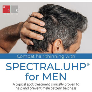 Combata a queda de cabelo regenerando mais cabelos com Spectral.UHP, nosso tratamento recomendado por dermatologistas para queda e queda de cabelo. É o único tratamento de crescimento capilar clinicamente comprovado para regenerar o cabelo em 3 meses*. Ao usar a solução Spectral.UHP todos os dias, você pode reviver seus folículos pilosos e manter a densidade capilar ao longo do tempo. Paciência e perseverança são a chave para o sucesso usando Spectral.uhp. – Combate eficazmente a queda de cabelo e queda de cabelo: Spectral.uhp é um tratamento local tópico para homens preocupados com queda e queda de cabelo. Clinicamente comprovado que ajuda e previne a calvície masculina, clinicamente conhecida como alopecia androgênica, o Spectral.UHP pode ser usado em todos os estágios da queda de cabelo. – Para queda de cabelo no vértice: Spectral.O UHP funciona melhor para homens com queda de cabelo hereditária no vértice (coroa) do couro cabeludo e na área na nuca, logo abaixo da coroa. O Spectral.UHP não é indicado para queda da linha do cabelo ou calvície na parte frontal do couro cabeludo. Para uma rotina completa de queda de cabelo, combine Spectral.UHP com nosso outro produto mais vendido Spectral.dnc-n. – Ingrediente comprovado para queda de cabelo: Spectral.UHP é formulado com 5% de minoxidil, um ingrediente que estimula o folículo piloso e promove o crescimento saudável de novos cabelos. Este tratamento de crescimento capilar extra forte atua no nível folicular, tornando o novo crescimento do cabelo mais forte, mais espesso e menos propenso a quebras. – Como usar: aplique 6 sprays na área desejada 2 vezes ao dia. A queda pode ocorrer ao usar o Spectral.UHP pela primeira vez, à medida que o crescimento de novos cabelos aumenta e os cabelos velhos são liberados. 85% dos usuários relatam começar a ver resultados dentro de 8 a 16 semanas com o uso consistente. Os resultados podem variar dependendo do estágio e da gravidade da queda de cabelo, bem como da consistência do uso. – Tecnologia de nanossomos: as fórmulas da DS Laboratories apresentam nossa tecnologia exclusiva de nanossomas. Essa tecnologia usada para encapsulamento permite a liberação contínua dos ingredientes ativos, criando maior eficácia com resultados mais duradouros.