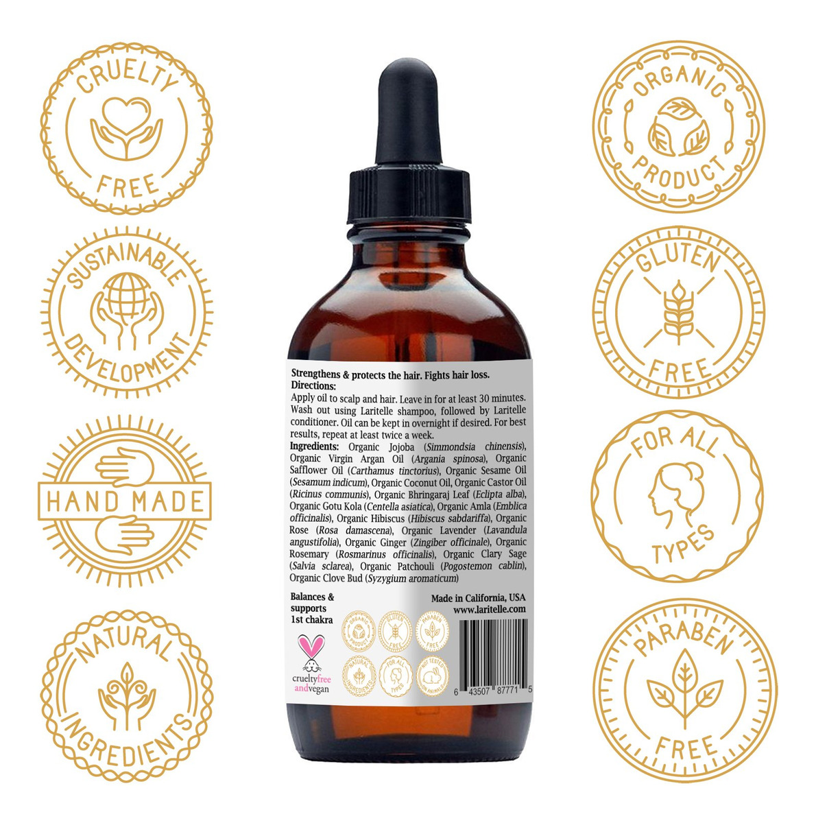 Tratamento orgânico de queda de cabelo Laritelle para homens e mulheres | Fortalece, fortalece e rejuvenesce folículos | Impede a queda de cabelo, promove o crescimento de novos cabelos | Livre de transgênicos. Vegano | 4 onças — COMBATE A QUEDA DE CABELO E PROMOVE O CRESCIMENTO DE NOVOS CABELOS SAUDÁVEIS. Suaviza o cabelo, nutre a haste capilar, rejuvenesce os folículos pilosos. Fortalece e protege o cabelo. Ervas ayurvédicas orgânicas ricas em antioxidantes, lavanda orgânica, gengibre, alecrim, patchouli e cravo ajudam a promover o crescimento do cabelo, estimulam o couro cabeludo e as raízes. Clary Sage fortalece o cabelo no nível celular, previne a queda prematura do cabelo, equilibra a oleosidade do couro cabeludo, dá brilho e brilho. – Feito com ingredientes orgânicos 100% puros, da mais alta qualidade e certificados. Nossos ingredientes são provenientes de distribuidores que vendem óleos extraídos/destilados de plantas que não foram pulverizadas ou tratadas com nenhum produto químico. – ECOLÓGICO, SEGURO E NÃO TÓXICO. SEM USO DE PRODUTOS QUÍMICOS NOCIVOS — Não contém sulfatos, álcool, parabenos, glúten e ftalatos. Livre de transgênicos. Vegano. Não testado em animais. Embalado em frascos de vidro âmbar recicláveis. – Extra gentil e suave para seu couro cabeludo e cabelo. Nutritivo para todos os tipos de cabelo. Seguro para cabelos tingidos. – SERVIDO À MÃO COM AMOR E CUIDADO EXTRA. Equilibra e suporta o 1º chakra. Feito com orgulho na Califórnia, EUA.