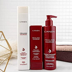 LANZA Healing ColorCare Trauma Treatment Hair Treatment contém uma combinação de aminoácidos e ceramidas para estimular a fixação da cor e a longevidade. Este produto poderoso dá brilho e evita danos causados pelo calor e pelo sol.