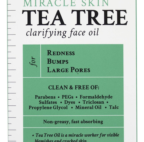 óleo facial seguro para todos os tipos de pele, ideal para peles secas, oleosas ou sensíveis. Formulado com ingredientes naturais, esse óleo melhora visivelmente os problemas comuns, como vermelhidão, manchas e poros dilatados, graças ao óleo de melaleuca, que combate a máscara. Contém hamamélis, um adstringente natural que ajuda a limpar a pele. Restaura a força da pele desidratada por medicamentos para acne, ácidos ou mudanças climáticas. Sua fórmula não oleosa é rapidamente absorvida, promovendo a reparação da pele rachada e um tom uniforme.