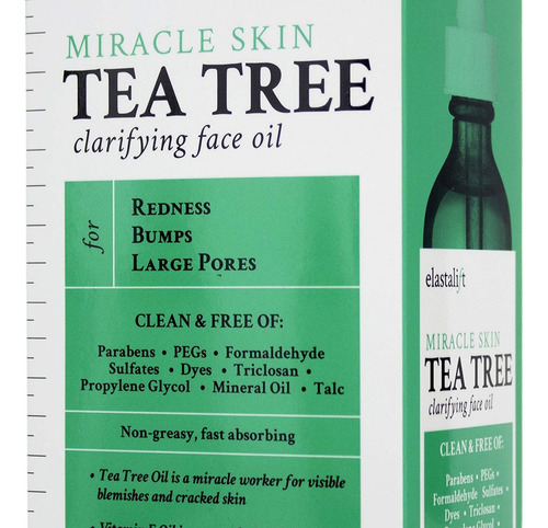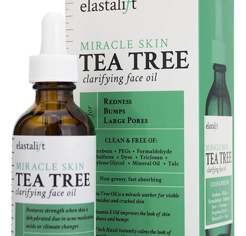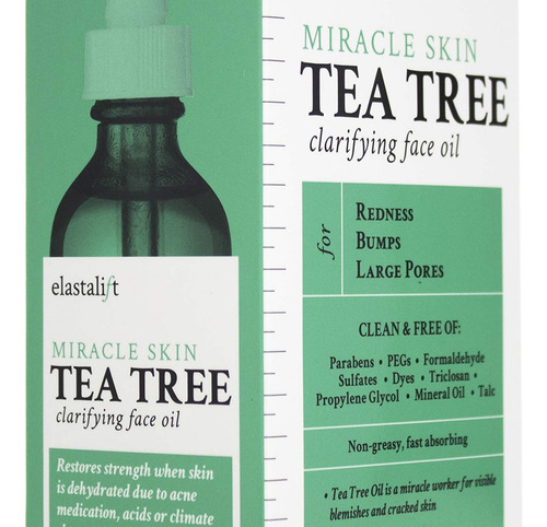 Tratamento de manchas Elastalift com óleo de melaleuca e hamamélis. Óleo de melaleuca clareador para o rosto. Ajuda a combater vermelhidão, acne, manchas, pele seca e com coceira e poros dilatados. Fórmula não irritante, 50 ml de