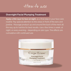Tratamento facial Crepe Erase Advanced, de preenchimento noturno, com complexo Trufirm e 9 superhidratantes, 1,7 onças — Projetado como a última etapa em sua rotina de cuidados faciais. Um tratamento facial rico e profundamente hidratante que funciona durante a noite para dar volume e suavizar linhas finas e rugas. Acorde com uma pele mais melhorada, com aparência mais jovem e radiante. – Visa a textura cremosa da pele nas zonas que indicam a idade: sob os olhos, na frente das orelhas, na testa e nas linhas de riso. – Massageie uma camada fina no rosto, especialmente nas áreas na frente das orelhas e na linha da mandíbula. Use algumas vezes por semana.