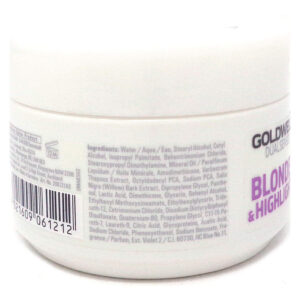 Tratamento Goldwell Dualsenses Blondes and Highlights de 60 segundos, 6,7 fl oz – Ajuda a restaurar a vibração da cor em cabelos loiros e mechados – Possui uma fórmula Fade Stop que fortalece ativamente a ancoragem das moléculas de cor – Enquanto o inovador Blonde Chroma Complex infundido com óleo lipídico Mirabelle repara o cabelo e atua para neutralizar tons indesejados de amarelo e bronze – Fornece resultados ultrarrápidos – O tratamento intensivo apresenta uma fórmula inovadora de desvanecimento – Regenera o cabelo em 60 segundos