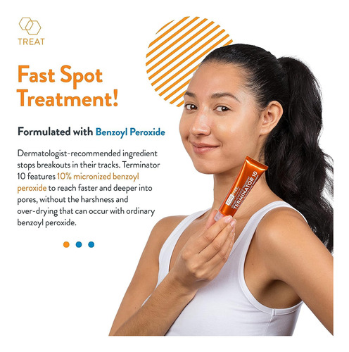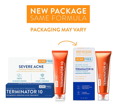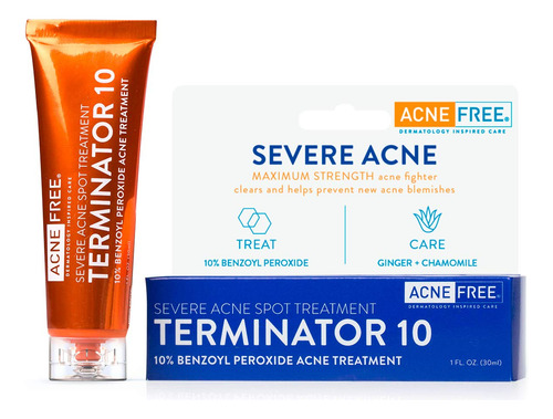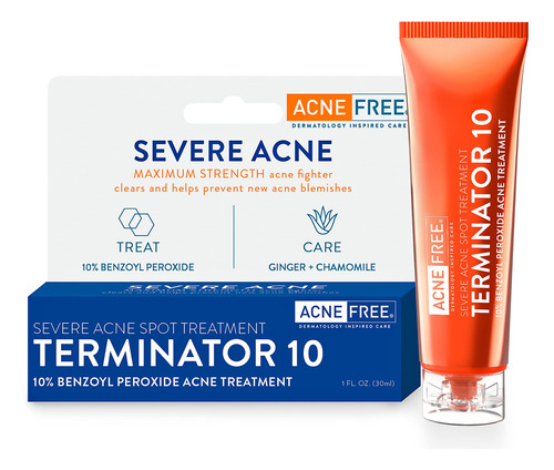 AcneFree Terminator 10 Acne Spot Treatment with Benzoyl Peroxide 10% Maximum Strength Acne Cream Treatment, 1 Ounce – Pack Of 1 – Redness Control Cream – Dermatologist recommended – Eliminate acne bacteria.
