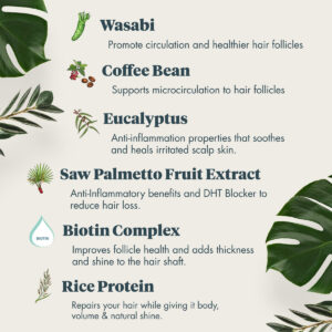 Tratamento Reviv3 ProCare: tratamento MicroActiv3 – Complexo tripeptídico avançado: vegetais, nutrientes e vitaminas antioxidantes especializados ajudam a proteger contra resíduos ambientais e o acúmulo de DHT no couro cabeludo – Complexo Respiratório Dérmico: ajuda a renovação celular a aumentar a esfoliação das células mortas da pele, aumenta a renovação celular, a respiração celular e a aparência mais jovem da pele – Complexo Active3: uma mistura concentrada de vegetais e húmus que desafiam o envelhecimento ectantes, complexo vitamínico, incluindo extrato de flor de trevo, que ajuda a cuidar do couro cabeludo e deixar o couro cabeludo mais jovem pele do couro cabeludo e cabelos com aparência mais saudável – Saw Palmetto (extrato de fruta de Serenoa Serrulata): inibe a ação da 5-alfa redutase para evitar a formação de DHT, a principal causa da queda de cabelo – Complexo antienvelhecimento: extratos de ervas e complexo vitamínico