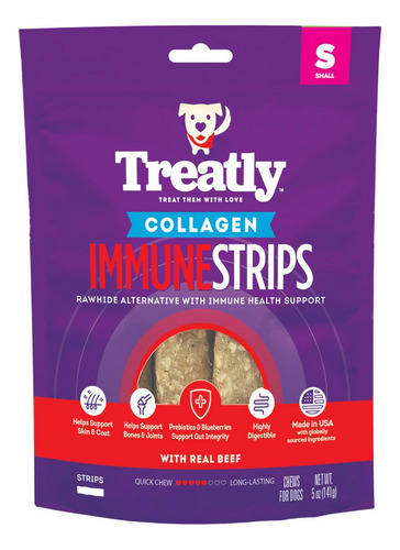 Treatly Collagen Immune Strips Para Cães, Mastiga 5 Onças/ca