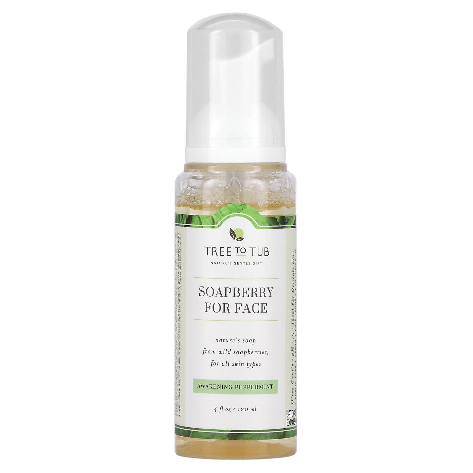 Tree To Tub Sabonete Facial Suave em Espuma de Sapindus para Limpeza Sem Óleo pH Equilibrado para Pele Oleosa e Sensível Hortelã-Pimenta do Despertar 120 ml (4 fl oz) – Tree to Tub Beleza Limpeza Facial Sabonetes Faciais.