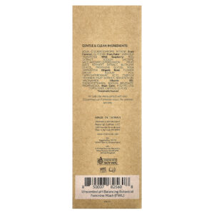 Cuidados Pessoais Botânicos Aprimorados Desfrute dos melhores ingredientes de higiene feminina da Mãe Natureza, incluindo Água de Rosas, Sapindus e Nicotinamida (Vitamina B3).