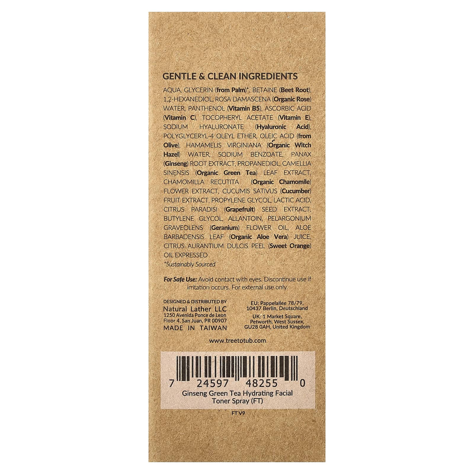 Tree To Tub Tônico Facial Hidratante em Spray Chá Verde de Ginseng 120 ml (4 fl oz) – Tree to Tub Beleza Limpeza Facial Loções tônicas Beleza por Ingrediente Cuidados com a Pele com Ácido Hialurônico.