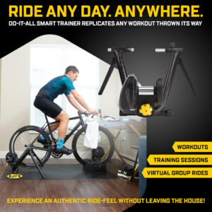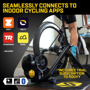 Treinador de bicicleta interior inteligente Saris M2, compatível com o aplicativo Zwift, preto, fabricado nos EUA – WHEEL ON: conecta-se à roda traseira da bicicleta, sem necessidade de remover a roda ou desmontar a bicicleta. Nível de ruído: 69 decibéis a 20 mph – TREINAMENTO PRECISO: +/- 5% de precisão – CONTROLADO E CONSISTENTE: A resistência eletromagnética fornece sempre um treino medido – CONECTIVIDADE: conecta-se a aplicativos de ciclismo indoor com padrões duplos ANT+ FE-C e Bluetooth. Certificado pela Zwift. Inclui assinatura de um mês do aplicativo de treinamento virtual Rouvy – COMPATIBILIDADE: espeto de liberação rápida de aço incluído para quadros comuns de bicicletas de estrada e mountain bike