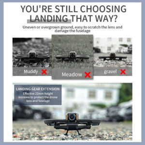 1. Melhore efetivamente a capacidade do drone de se adaptar ao ambiente terrestre durante a decolagem e a aterrissagem; evite detritos do solo para menos contaminação ou danos ao filtro da lente.