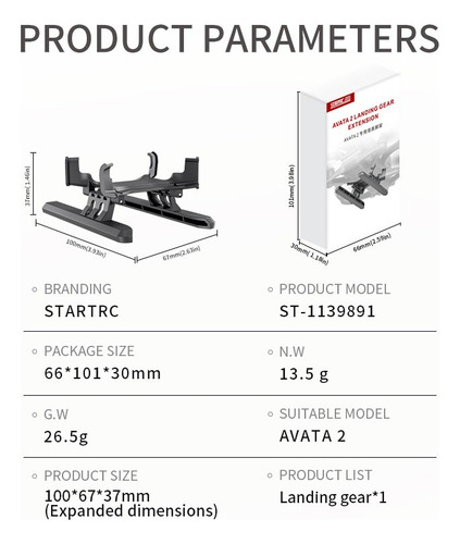 2. Design dobrável de liberação rápida, instalação rápida; não precisa ser removido quando o drone é dobrado e armazenado, o que é conveniente e prático. 3. Apenas 13,5 g de peso e não afeta o desempenho do voo.