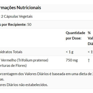 5. Composição do Produto: Cada cápsula contém 375mg de extrato de Trevo Vermelho, uma planta conhecida por suas propriedades naturais. Este suplemento é livre de conservantes e ingredientes artificiais, oferecendo uma opção pura e natural. VALIDADE LONGA