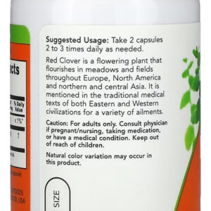 1. Suporte Principal: O Trevo Vermelho da Now Foods é um suplemento de 375mg que vem em cápsulas vegetais. Conhecido por suas propriedades naturais, o trevo vermelho é utilizado há séculos em várias culturas por seus componentes benéficos.