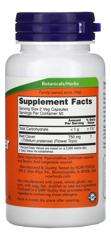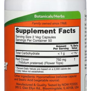 Trevo Vermelho 375mg Now Foods 100 Veg Caps Produto Importado
