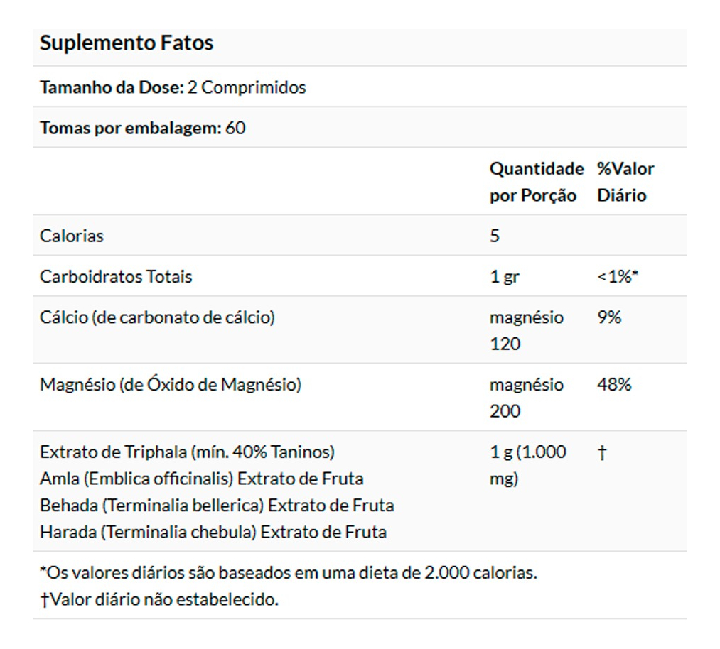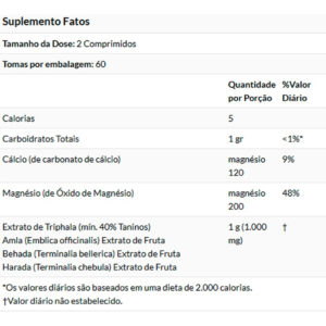 Informações nutricionais dose: 2 comprimidos doses por recipiente: 60 quantidade por dose % valores |