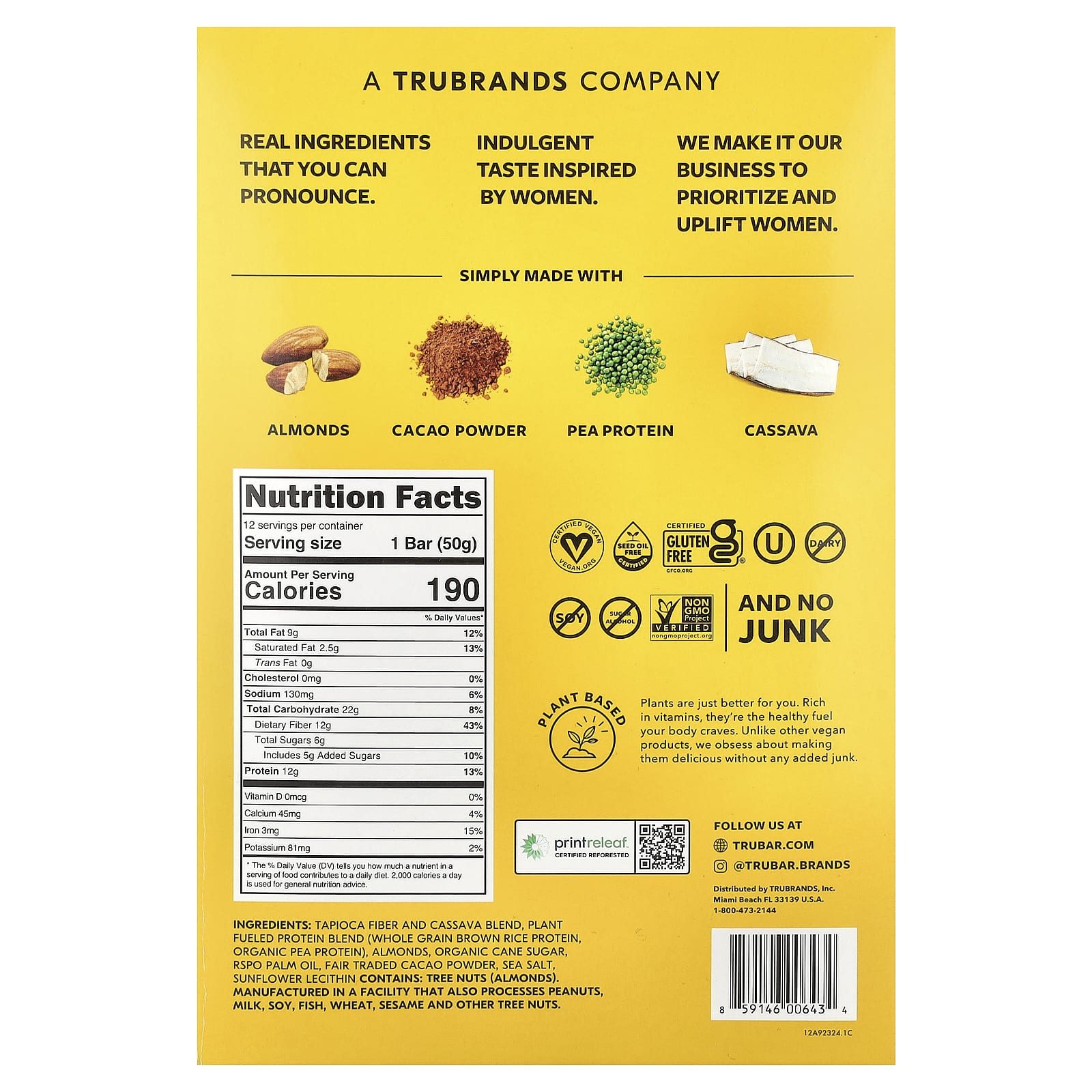 Trubar Barra de Proteína à Base de Plantas Amêndoa e Amor Salgados e Deliciosos 12 Barras 50 g (176 oz) Cada