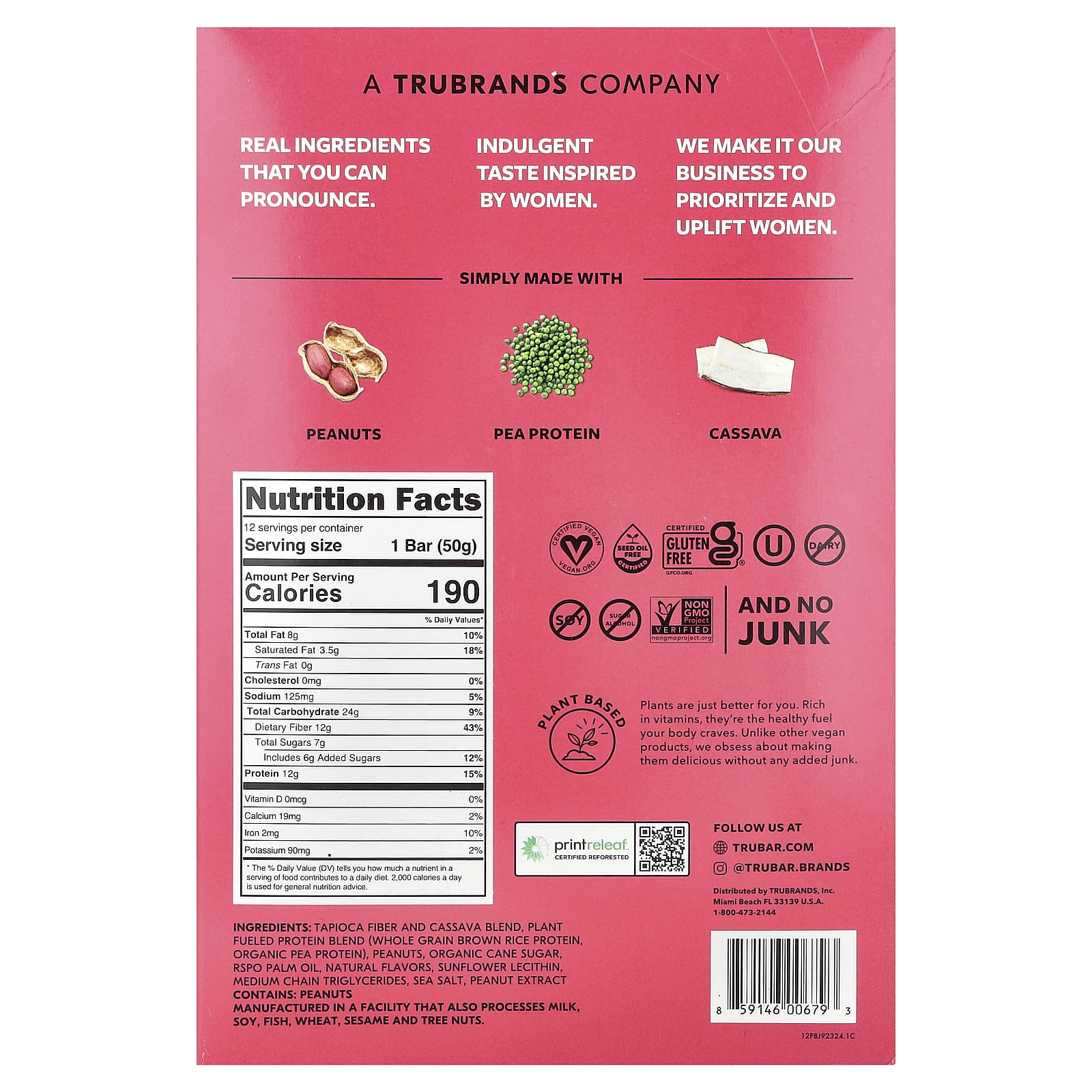 Mistura de fibra de tapioca e mandioca, mistura de proteínas à base de plantas (proteína de arroz integral de grãos integrais, proteína de ervilha orgânica), amendoim, açúcar de cana orgânico, óleo de palma rspo, sabores naturais, lecitina de girassol, triglicerídeo de cadeia média, sal marinho, extrato de amendoim.