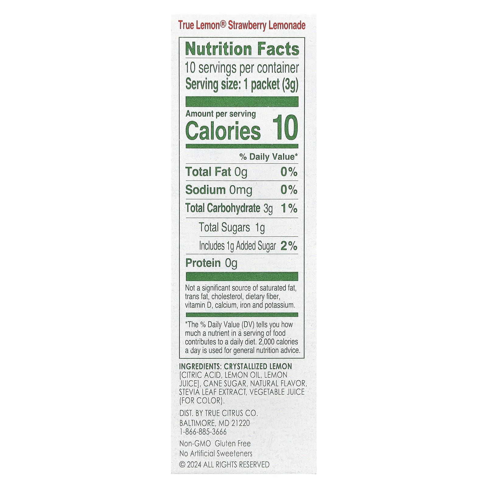 True Citrus Limão Verdadeiro Limonada de Morango 10 Pacotes 30 g (106 oz) – True Citrus Alimentos Chás e bebidas Creamers & Beverage Enhancers.