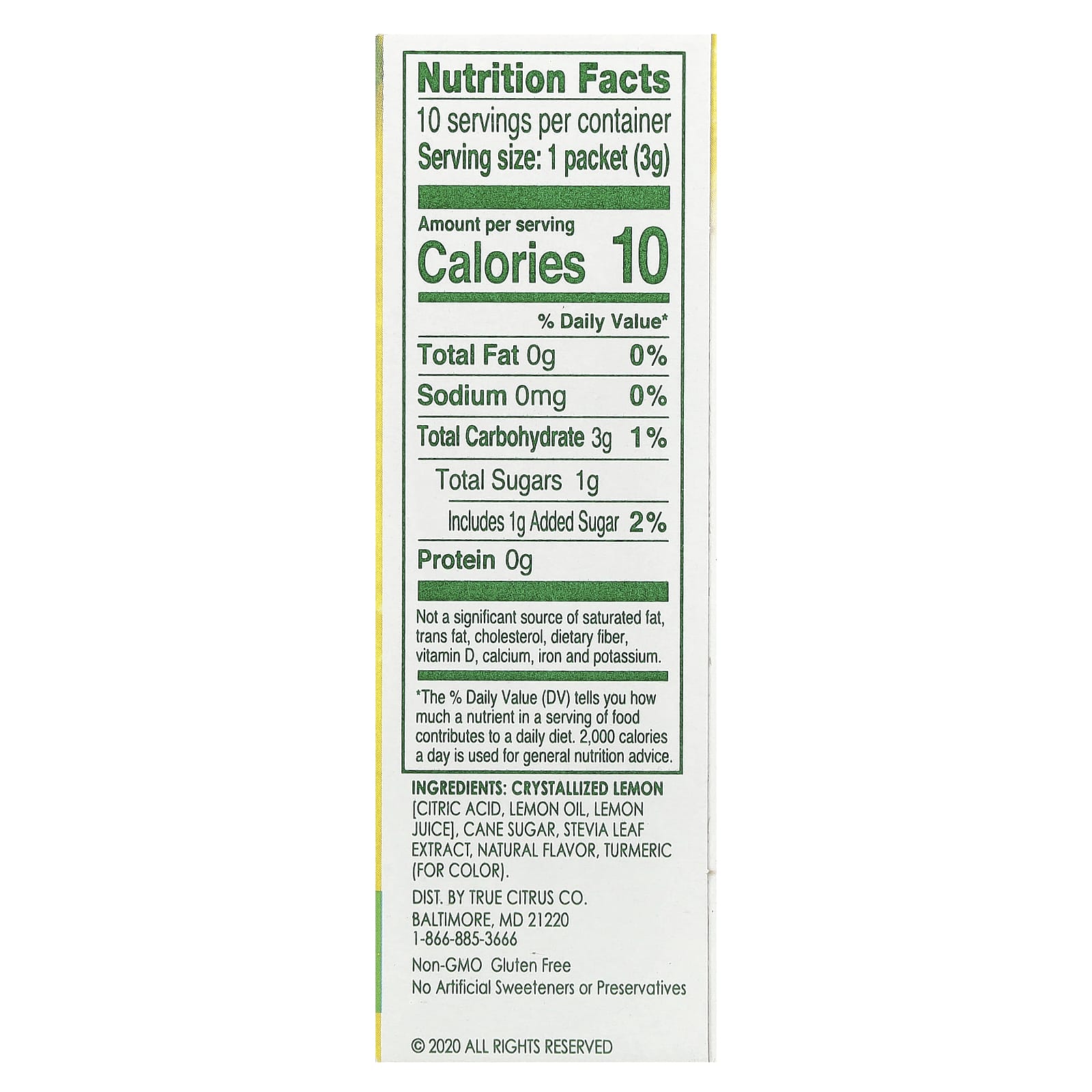 True Citrus Limão Verdadeiro Limonada Original 10 Pacotes 30 g (106 oz) – True Citrus Alimentos Chás e bebidas Creamers & Beverage Enhancers.