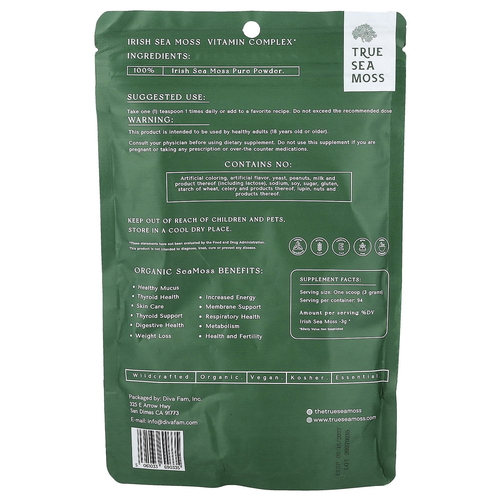 True Sea Moss Complexo Vitamínico Premium de Musgo Marinho em Pó 227 g (8 oz) – True Sea Moss Suplementos Minerais Musgo marinho.