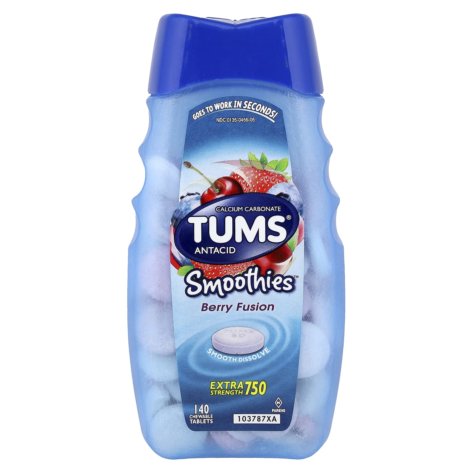 Tums Antiácido Smoothies e Fusão de Frutos Silvestres 140 Comprimidos Mastigáveis (750 mg por Comprimido) – Tums Bebês e Crianças Saúde Infantil Auxílio digestivo para crianças Suplementos Saúde Intestinal Antiácidos e Alívio Digestivo Refluxo Ácido e Azia.