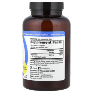 Twinlab Cápsulas de Magnésio 420 mg 200 Cápsulas – Twinlab Suplementos Minerais Magnésio.