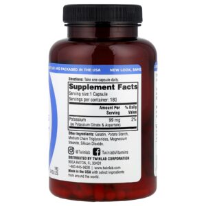 Twinlab Cápsulas de Potássio 180 Cápsulas (99 mg por Cápsula) – Twinlab Suplementos Minerais Potássio.