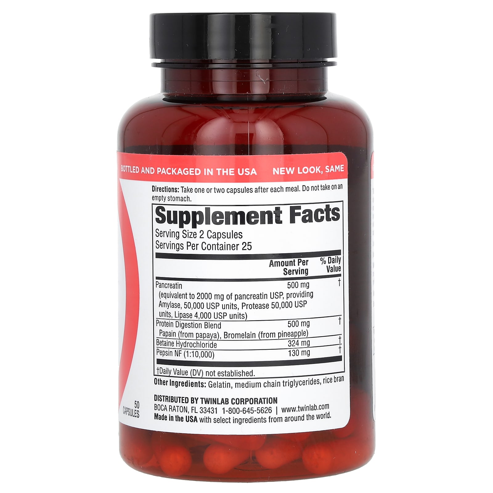 Twinlab Cápsulas Super Enzyme 50 Cápsulas – Twinlab Suplementos Saúde Intestinal Enzimas Digestivas.