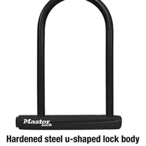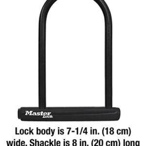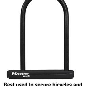 A trava em U Master Lock nº 8320D possui um corpo de aço temperado de 7-1/4 polegadas (18 cm) de largura para máxima resistência e confiabilidade. A manilha de travamento duplo de 1/2 polegada (13 mm) de diâmetro tem 8 polegadas (20 cm) de comprimento e é feita de aço temperado, oferecendo resistência extra a furar, cortar e serrar. O cilindro da chave de disco evita a separação.