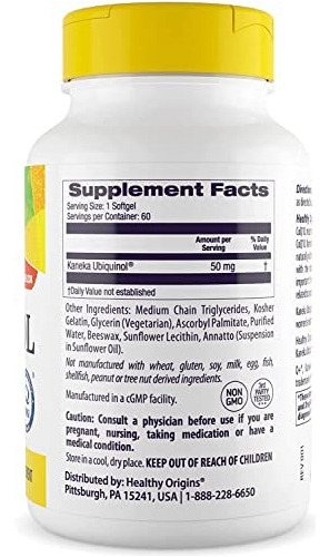 Healthy Origins Ubiquinol Kaneka Supplement 50mg 60 softgels