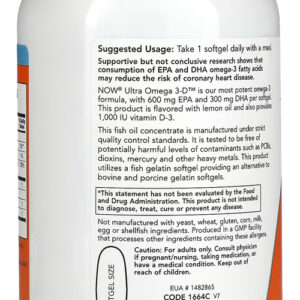 1. Suporte Principal: Ultra Omega 3D da Now Foods oferece uma alta concentração de EPA (600mg) e DHA (300mg), ácidos graxos ômega-3 essenciais para o equilíbrio corporal. Este suplemento é ideal para quem busca apoiar seu bem-estar de maneira natural e eficaz.